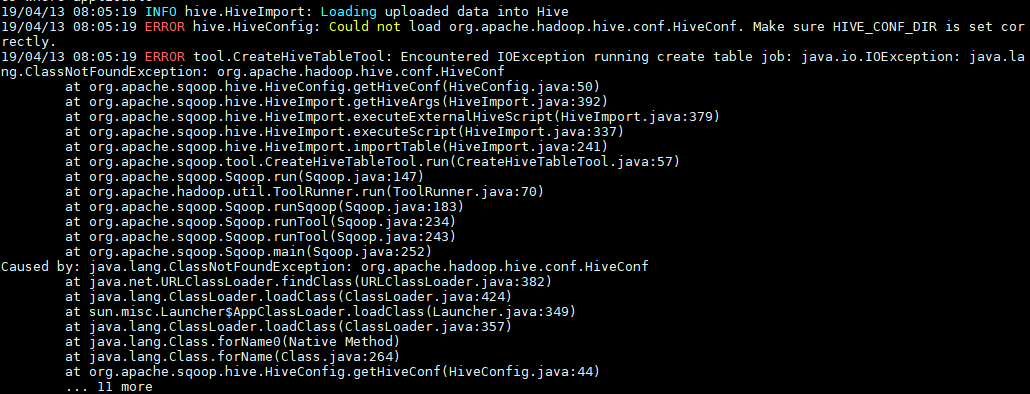 如果执行报错 java.io.IOException: java.lang.ClassNotFoundException: org.apache.hadoop.hive.conf.HiveConf