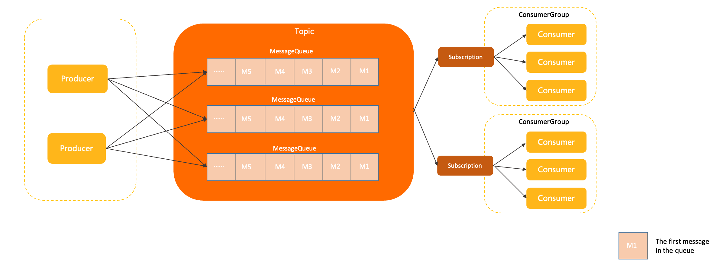 - 标签(Tag):Topic 下的二级分类,用于对消息进行过滤。